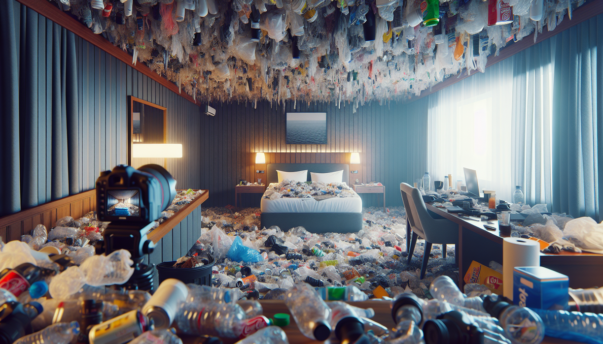 Saat masa inap berakhir, staf hotel akhirnya memperoleh akses penuh ke kamar. Mereka terkejut melihat tumpukan sampah menjulang setinggi meja, bahkan ada yang menyentuh kasur. Bungkus makanan siap saji, cangkir sekali pakai, serta kantong plastik menumpuk secara acak. Bau menusuk segera menyerang begitu pintu terbuka. Video kondisi ruangan ini cepat menyebar ke platform global dan memicu jutaan tayangan dalam waktu singkat.